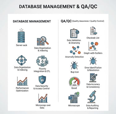 Mise en place et gestion d'un système rigoureux d'assurance qualité et contrôle qualité (AQ/CQ) pour garantir l'intégrité et la fiabilité des données.